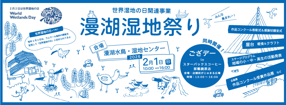 令和7年度 世界湿地の日関連事業 「漫湖湿地祭り」 今年も「世界湿地の日」にあわせて、「漫湖湿地祭り」を開催します!今回は、地域連携事業として、スターバックスコーヒー那覇鏡原店の「ござデー」も同時開催されます!また、漫湖 […]