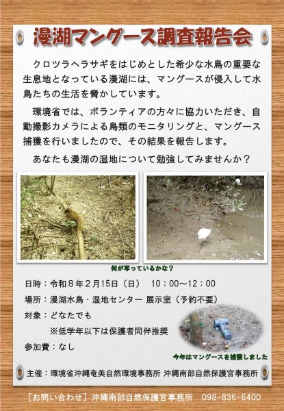 毎年2月2日は「世界湿地の日」!この日にあわせて、今年も漫湖水鳥・湿地センターでは「漫湖湿地祭り」を開催します。